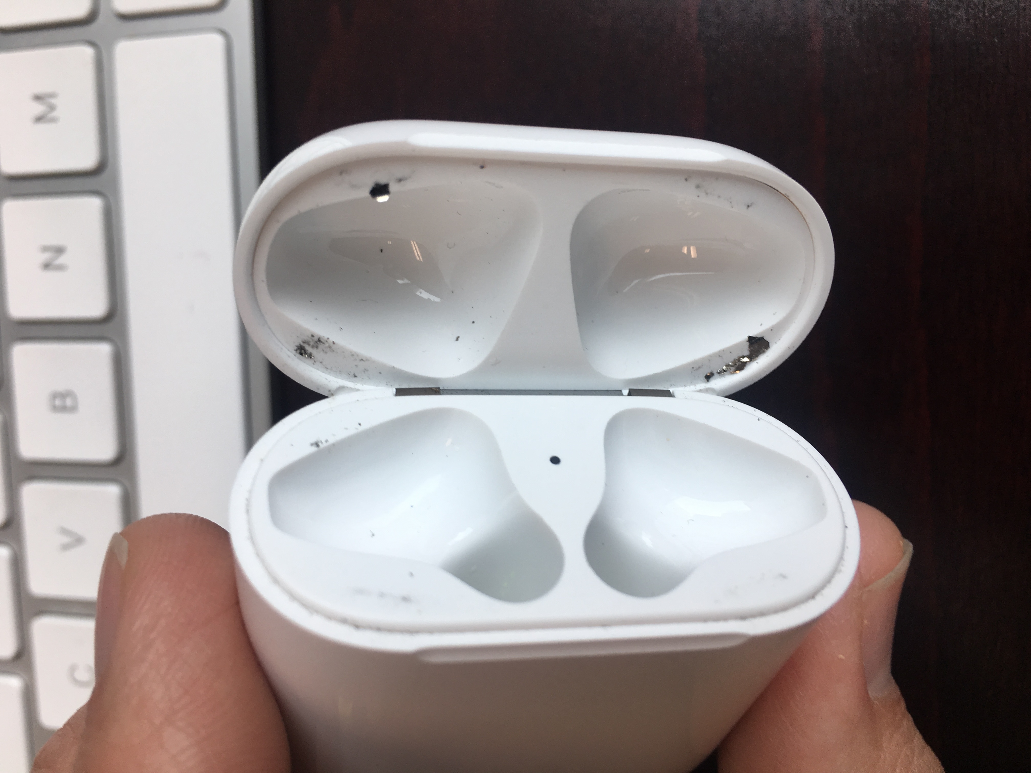 I made a video on how to clean your apple airpods case of metal shavings filings that might get stuck to the magnets of the case from your pocket and or hinge. After 1 week of use i ve noticed a build up of what looks like tiny metal shavings on the corners of the inside of the case lid. Do not attempt to use them until they are completely dry. The instructions remind you that airpods and airpods pro aren t waterproof airpods pro are merely water resistant to a certain degree. First wipe it down with a scratch free microfiber cloth to remove any lint dirt or wax.