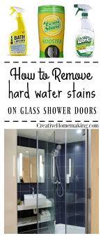 To clean wine glasses tea glasses or a brandy snifter pour the water into a container add the salt and stir until it dissolves wet the sponge in the mixture and scrub the stain. Spray the solution on all shower doors. Hard water stains are the cloudy streaks that form on your shower door. How to remove hard water stains from glass shower doors. Dry the glass with a micro fiber cloth.