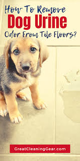 To clean up dog urine on hardwood floors start by putting on gloves and setting down paper towels to absorb the urine. Dog urine on tile floor is relatively easy to clean up. How to remove dog urine odor from a tile floor. You can clean in a way that can worsen the situation by spreading the odor all over the entire room. Let it sit on the urine stain for up to 10 minutes.