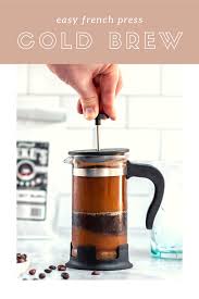 Strain the coffee in the french press by plunging the grinds all the way to the bottom and pouring out all the liquid to stop the brew. Save your money and make delicious naturally sweet cold brew iced coffee at home using your french press. If you are brewing your coffee in a cold environment you can use room temperature water. Insert the plunger into the french press and lower it to the top layer of coffee to keep the coffee particles under the water. Let sit for 14 16 hours at room temperature.